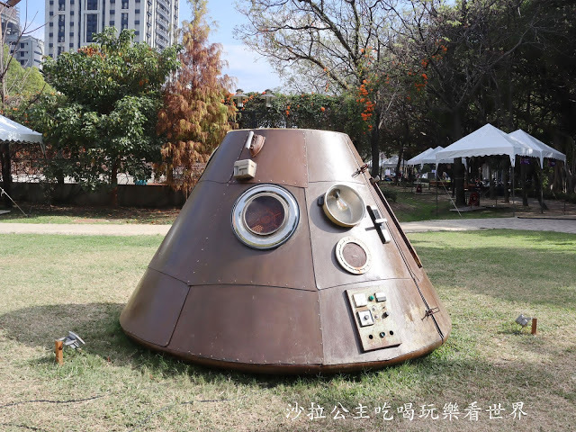 藝術家李承亮收集了多個二手家電並且以金屬焊接的方式組裝出太空艙,具有宇宙意象的太空艙卻是由日常生活的物件製成,讓這件作品同時具有懷舊與未來的想像