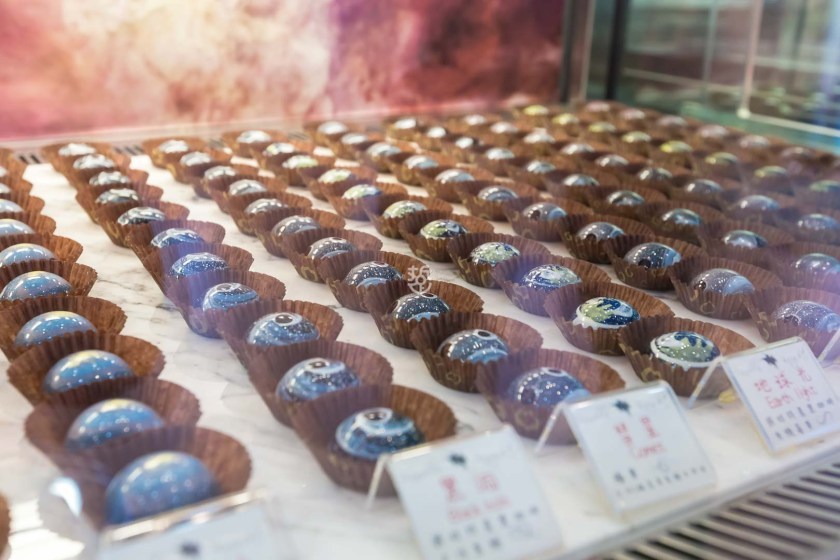 老闆一身的巧克力製作技法,可是遠赴到日本去學習回來的,一顆星球系列的製作時程需要三天,另外還有阿里山日出、野柳女王頭、西子灣夕陽..等的台灣風情巧克力,製作時間更費時三天,難怪可以獲得2016年南投埔里10大伴手禮的殊榮。