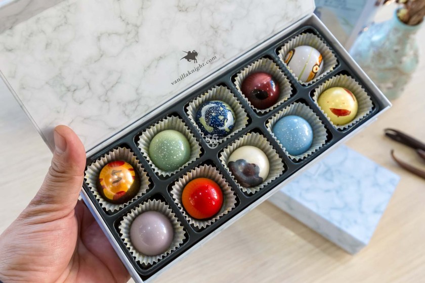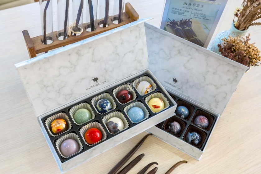 老闆原是在台北工作的資訊工程師,媽媽的一場病讓他辭去,返鄉就近照顧,也開始思索他的未來規劃,本身是甜點控的他,除了開始研究摸索甜點會用到的香莢蘭的種植,並結合埔里當地時才,誕生了10大行星彩繪巧克力的製作。