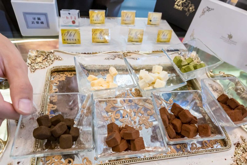 這裡有8種生巧克力口味提供試吃,其中焙茶口味是結合當地的茶葉製作,口感獨特,喉韻留香。