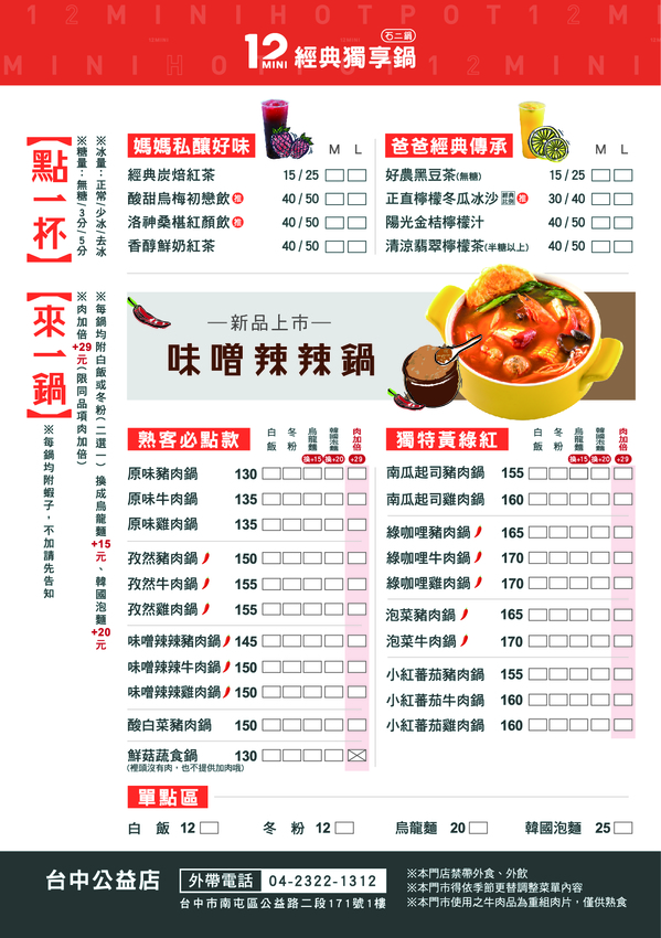 這次受到12MINI台中公益店的邀請,試吃12MINI新菜色,價格不變,而配料跟湯頭都晉級了,新推出的鍋物通通加入現煎的荷包蛋,非常特別。