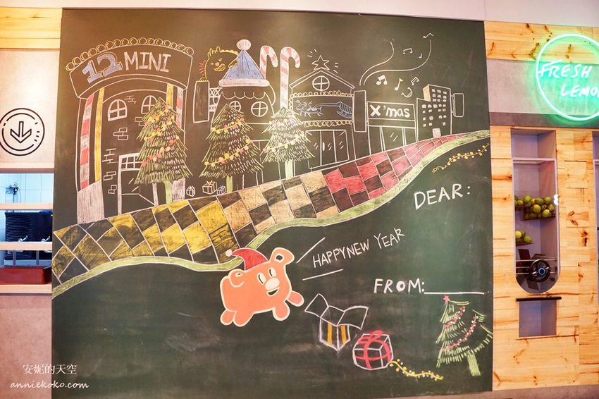 12MINI還有一面可愛的黑板彩繪牆,因應豬年即將到來,還有豬的可愛彩繪,整體好青春奔放的感覺。