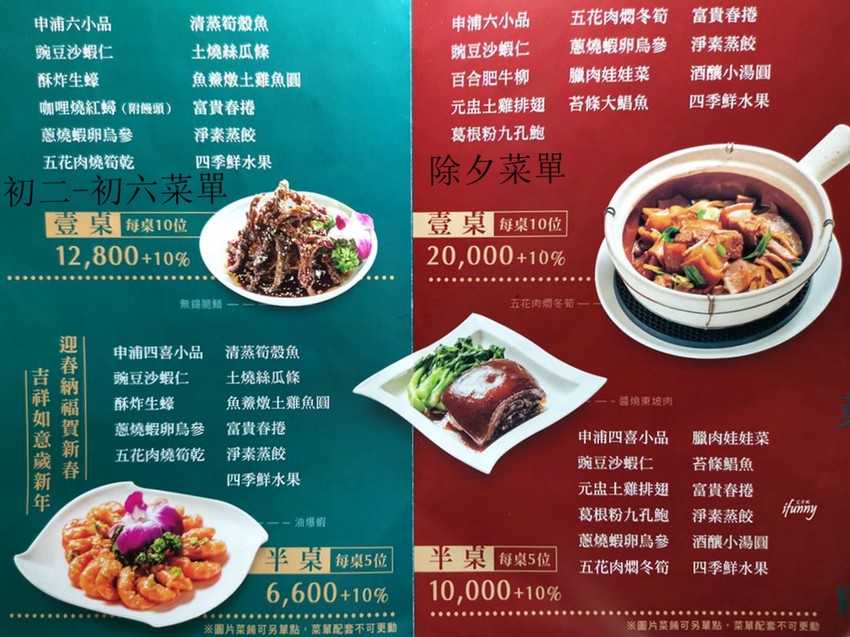 因應現在有許多小家庭,也推出半桌的套餐,但菜色依舊精彩啊!