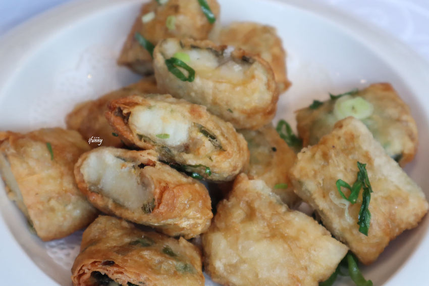 將切塊黃魚肉稍微醃過去腥,用腐皮包起再油炸,上桌時十分地乾爽。