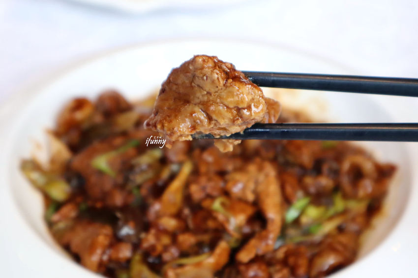 李師傅的禿肺只採草魚的肝與魚膘,並以紅燒下巴的調味來燒製的這道黑胡椒禿肺。雖說這是魚的內臟,但卻一點魚腥味都沒有。