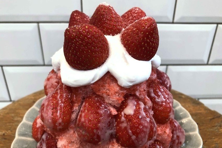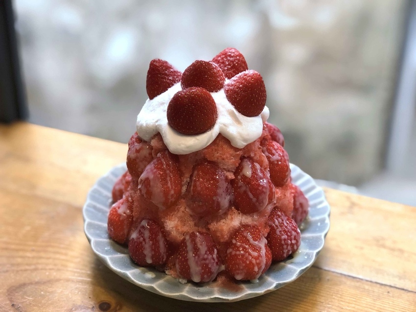 草莓刨冰上滿滿的草莓,雖然環繞在冰上的草莓不是一整顆而是剖半的,但這份量還是很足夠啊!