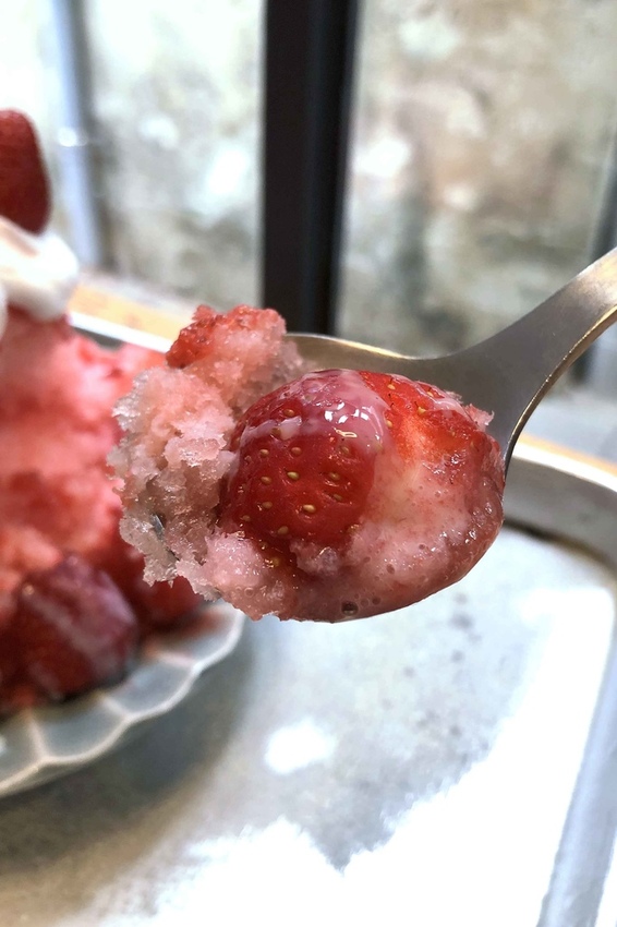 冰體頗細緻,挖開還吃得到草莓醬,酸酸甜甜讓人欲罷不能!(扭)