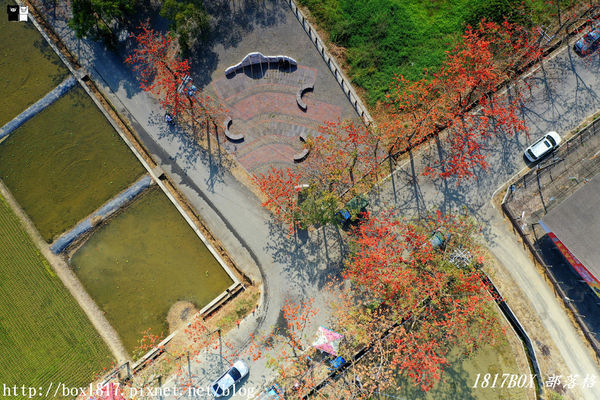 林初埤木棉花道位於南90與南89縣道上,長達一公里左右的木棉道花朵爭奇鬥艷,橘紅花海倒映在稻田水面上相當別緻動人,