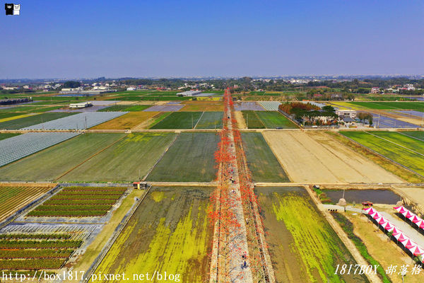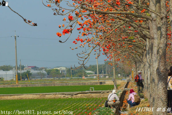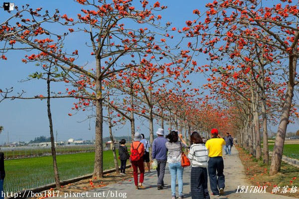木棉花襯著兩旁準備春耕的田地,在田野開闊的藍天白雲,繪出鄉野自然的繽紛色彩,吸引了許多的旅人走訪合影,