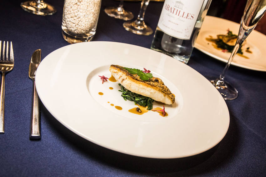 同樣也是利用台灣食材來呈現法式風情,嘉鱲魚使用菲力的部位,無刺且口感細致,肉質也相當厚實,魚皮香酥爽脆,下方襯的是炒菠菜