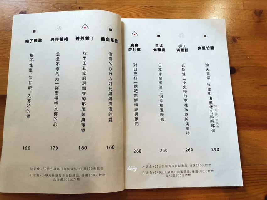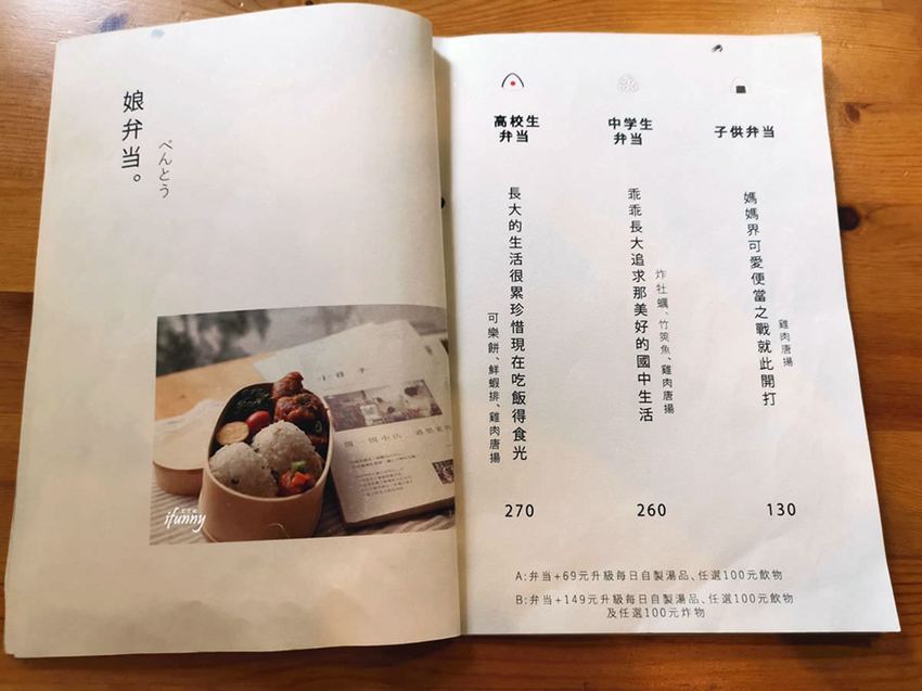 首先定食加價升級有A、B餐兩種,我們各選了一種來升級。
