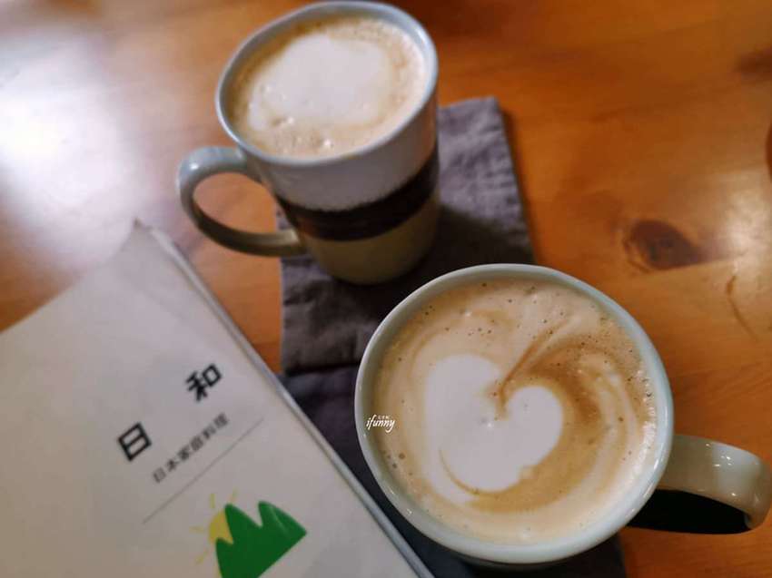 定食升級的飲品,我們不約而同選了咖啡拿鐵。