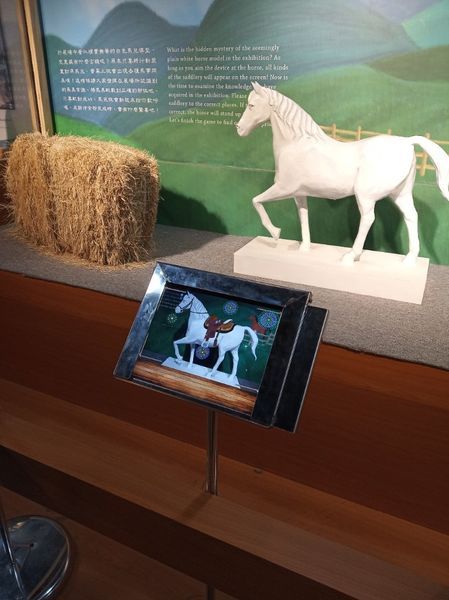 小導遊又出場了!! 這裡有一處幫馬穿上馬鞍與馬蹄鐵的互動式遊戲,很適合小朋友玩喔!!