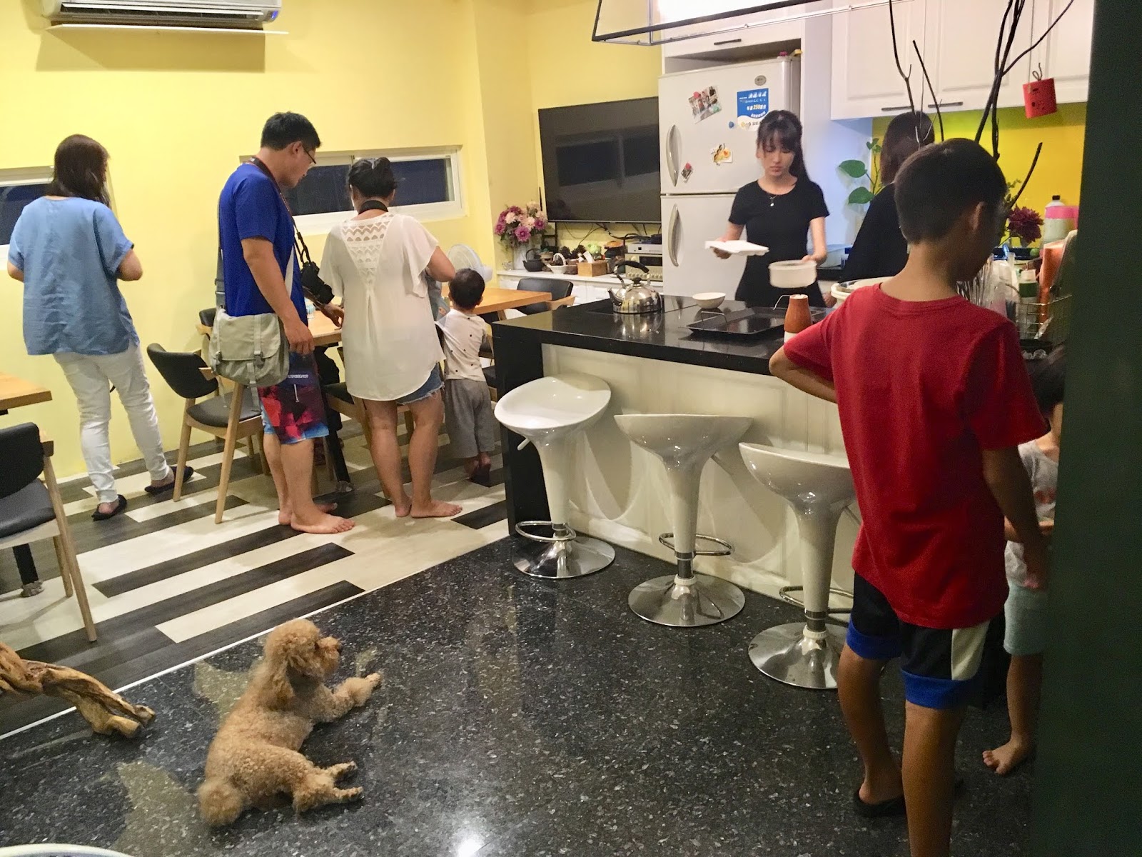 公共空間大家忙進忙出,端烤好的料理和分送食物,好熱鬧。