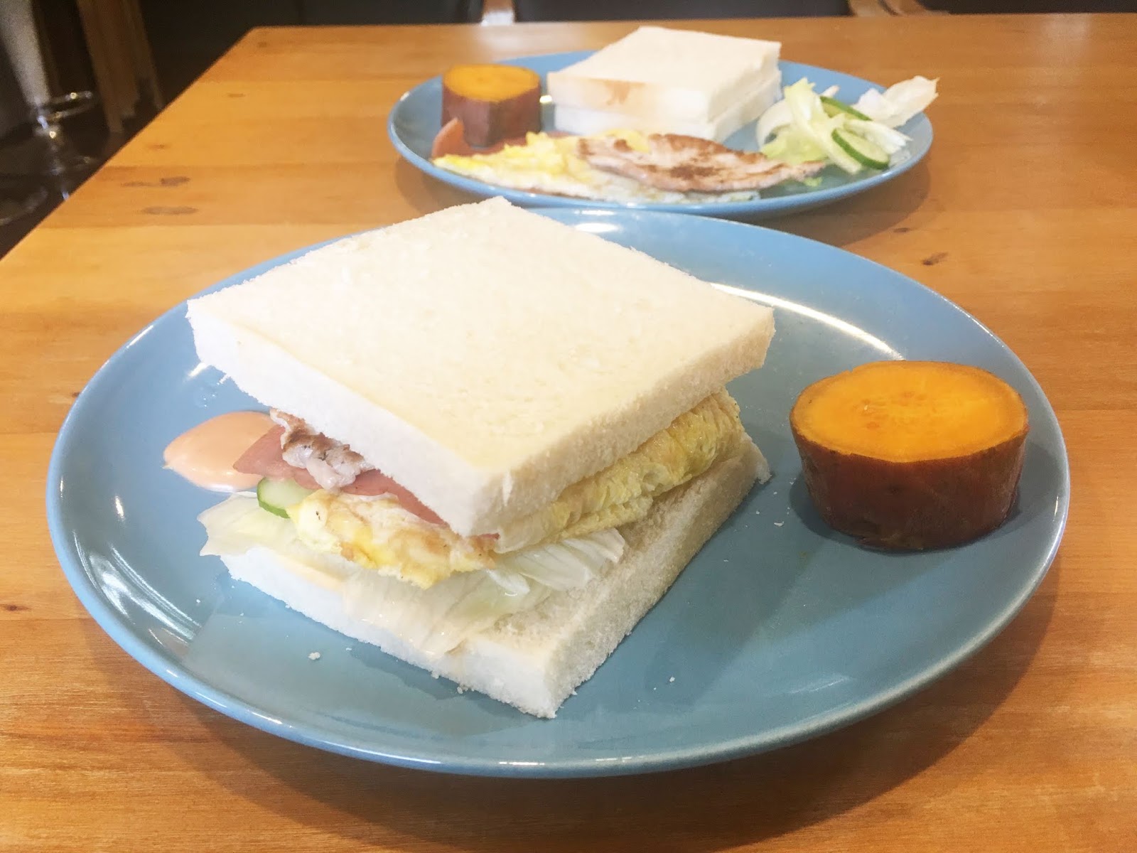 仔細品嚐,從鬆軟的吐司、鹹香的豬排、軟嫩的煎蛋、甘甜的地瓜、鮮翠的生菜和火腿...真的吃得出老闆娘的用心。