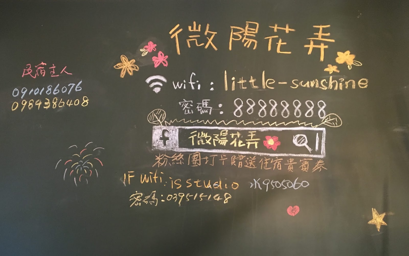 | 黑板上的民宿資訊 |