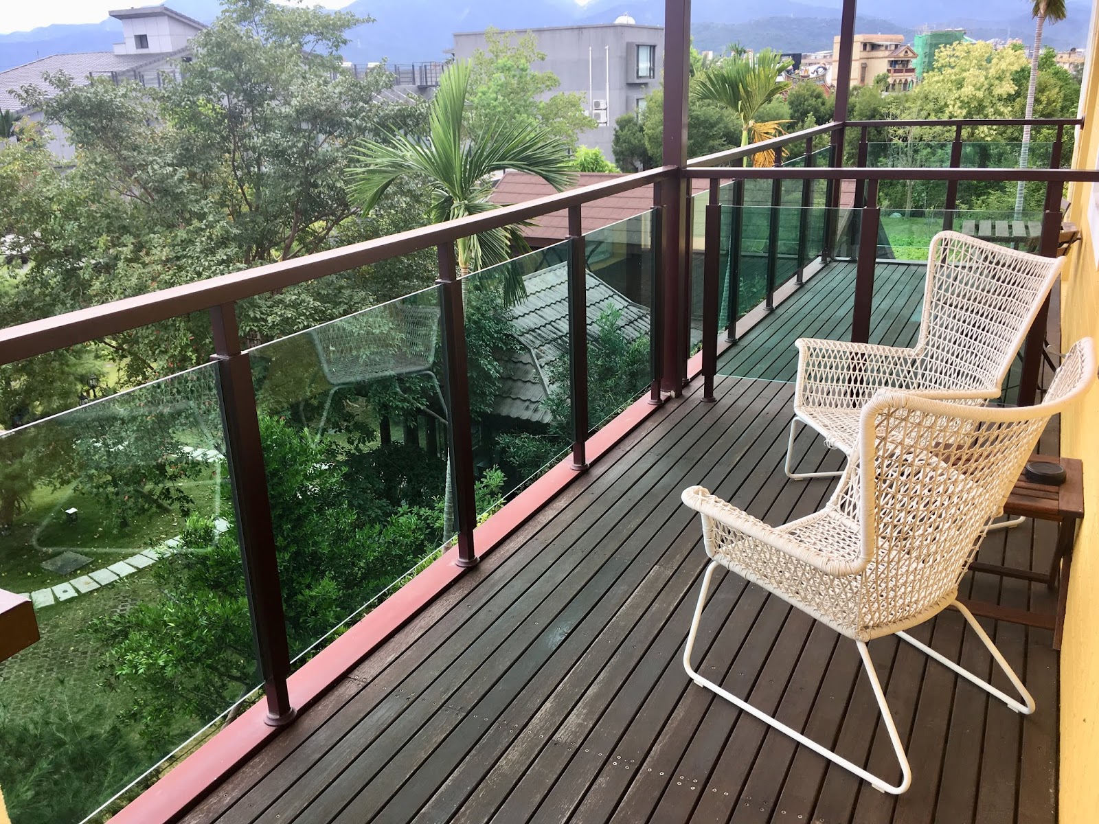 走到陽台好驚喜,有穿透感的透明護欄,讓視野更開闊了,外頭看到的就是閑靜的田園景致,坐在這裡發呆一個下午,配著一本書和一杯茶,一定很紓壓。
