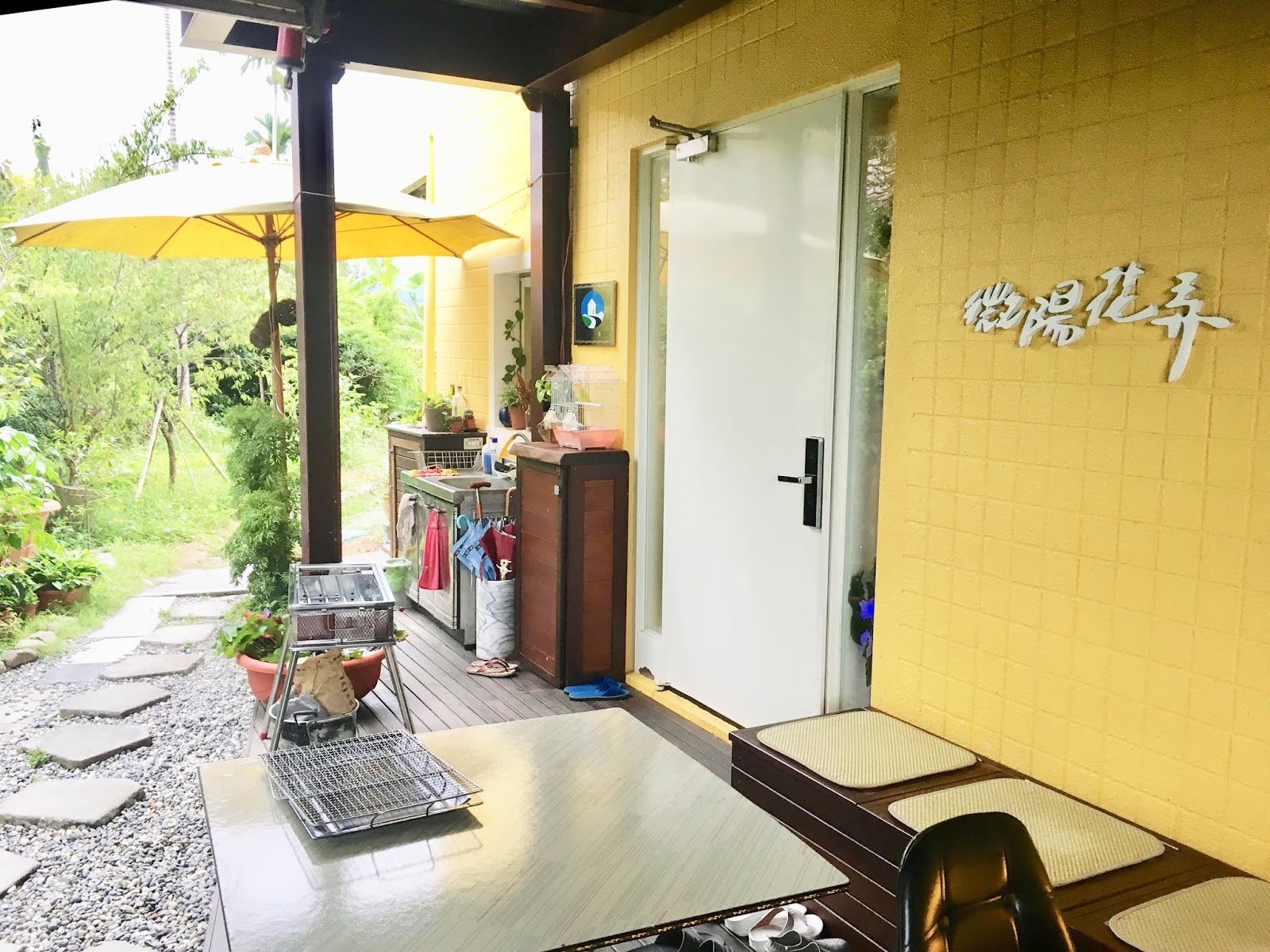 大門牆上以瀟灑的字體寫下「微陽花弄」,取其入住微陽花草巷弄間之意,披著傍晚微微的日光,從花草間走進民宿,果然名符其實。