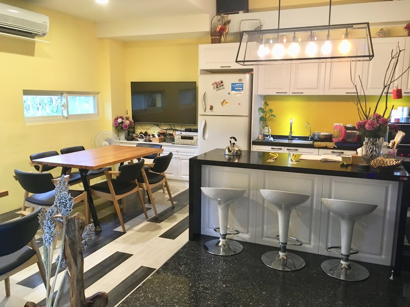 公共空間有吧台的設計,一旁有歐風用餐區,很適合住客閒適談天。