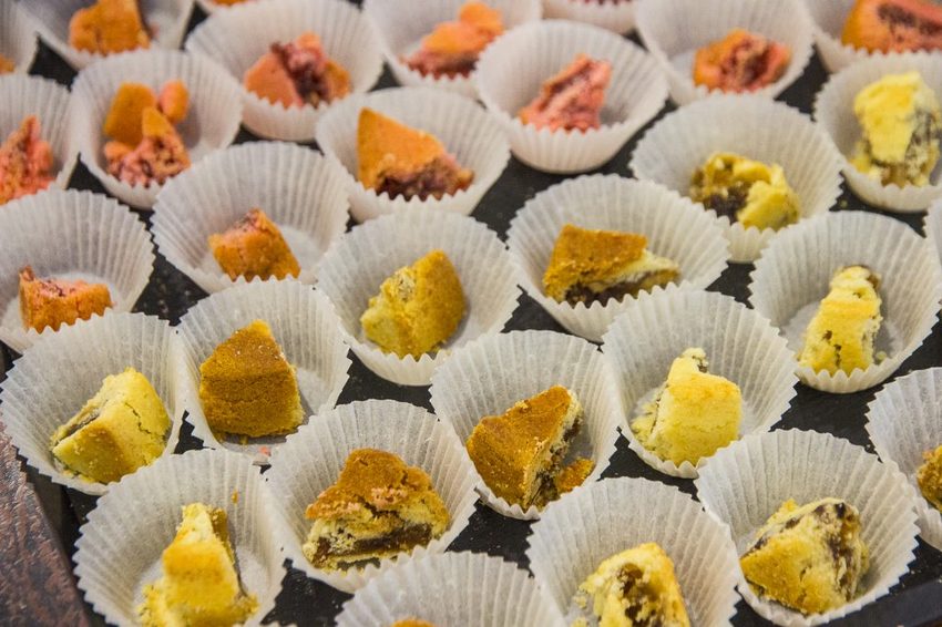 伴手禮區販售鳳梨酥、餅乾、蛋糕…提供試吃,吃了滿意喜歡再購買