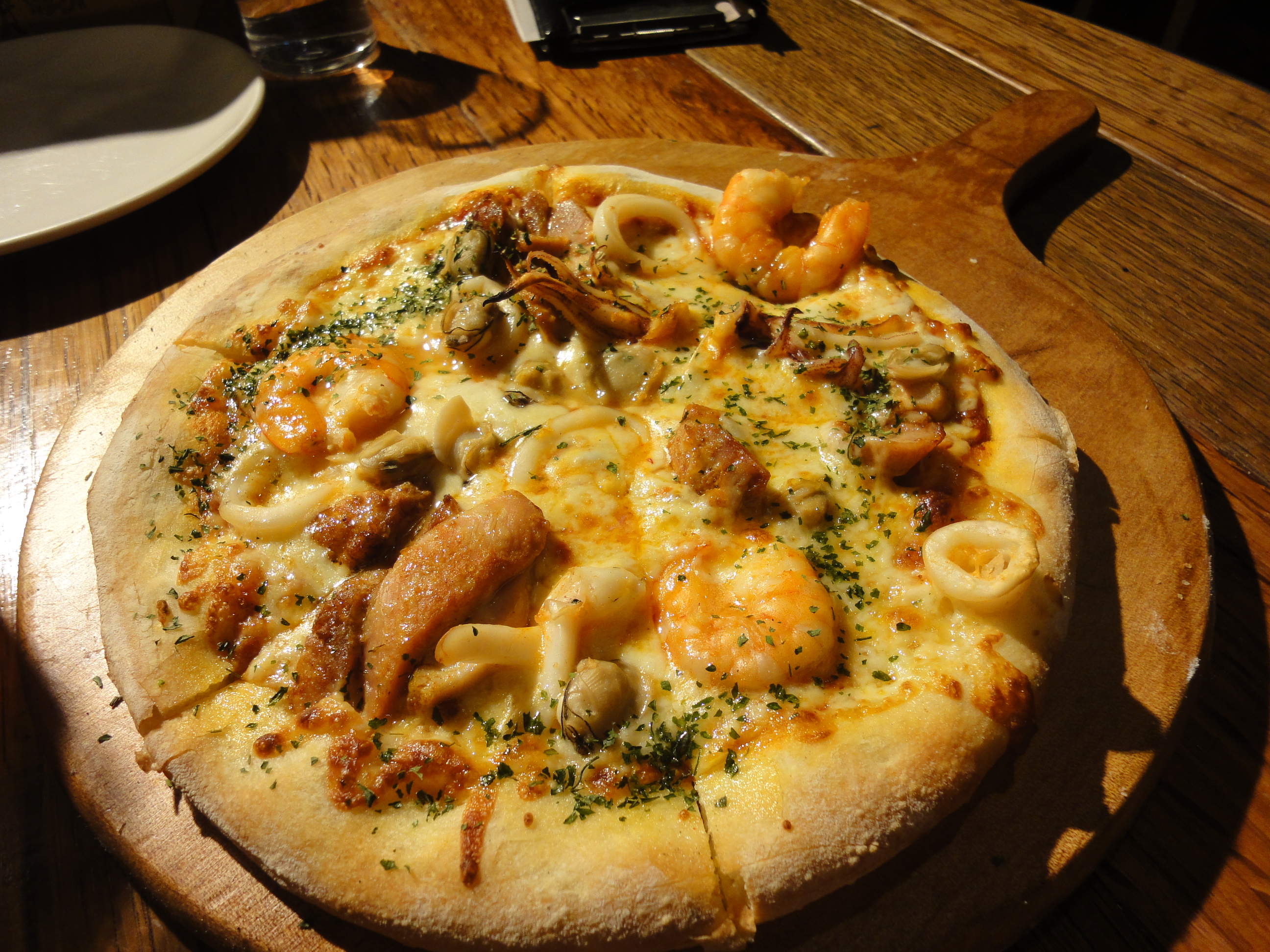 有鮮蝦花枝蛤蠣還有會牽絲的起司超美味