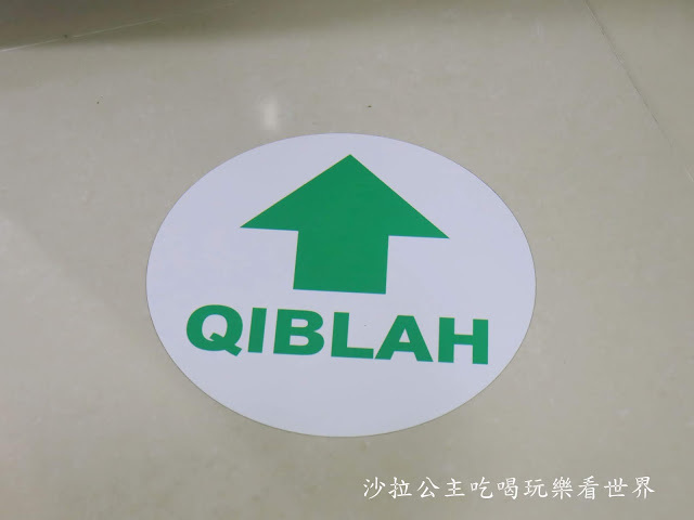 店裡的地板還畫著朝拜的方向,之前沙拉在一些五星級飯店的抽屜裡也有看到這樣的箭頭