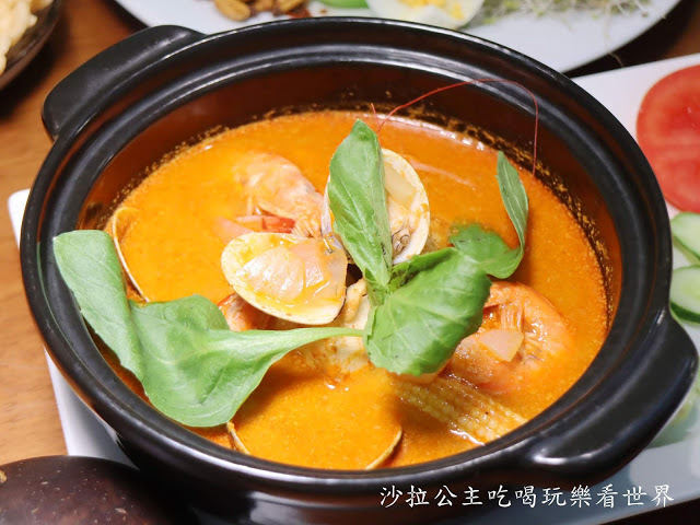 紅通通的咖哩讓人還沒吃就胃口大開,沙拉當然是一開始就夾了飽滿的蛤蜊囉