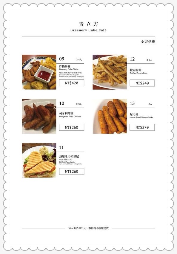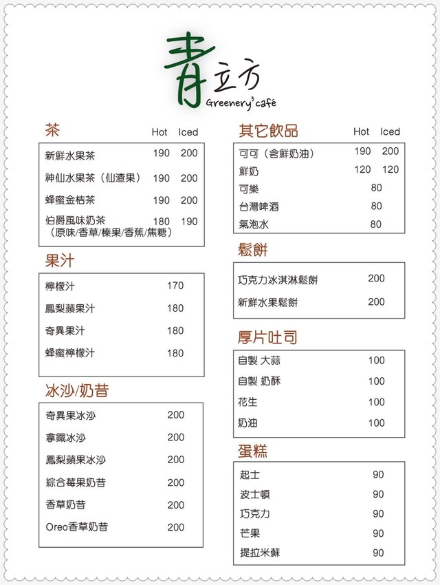青立方菜單(取自官網)