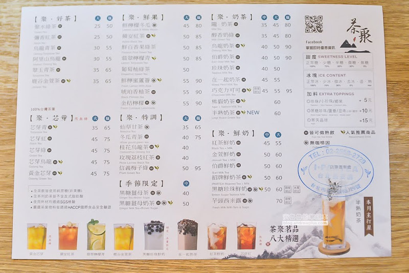 產品大致可分成茶、奶茶、鮮奶、鮮果、特調等,喜歡邊喝茶邊咬咬的同學可以找找鮮果和奶茶、鮮奶類,有珍珠也有蘆薈可以咬!