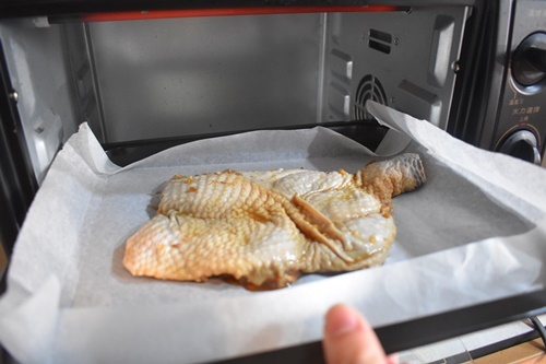 2.醃製24小時後,放入烤盤烤,烤箱溫度上下調成180度,烤30分鐘