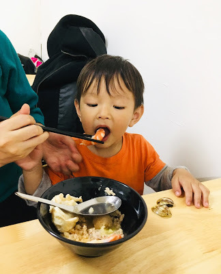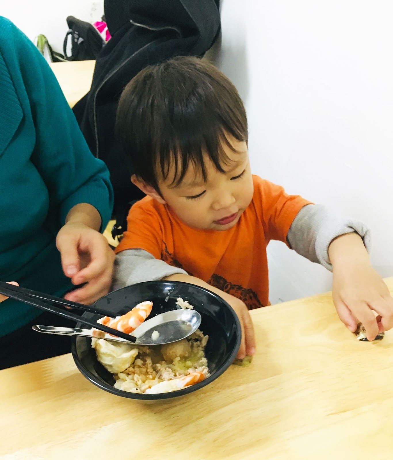 平常吃飯都要三催四請的小福寶,對這次的餐點很買單,特別喜歡吃「蕃茄鍋燒烏龍麵」的蕃茄湯頭和烏龍麵,也很愛「豪華海鮮鍋燒冬粉」的草蝦和蛤蜊,洗淨的蛤蜊殼和鮑魚殼成為了他的玩具,讓這頓午餐增加趣味。