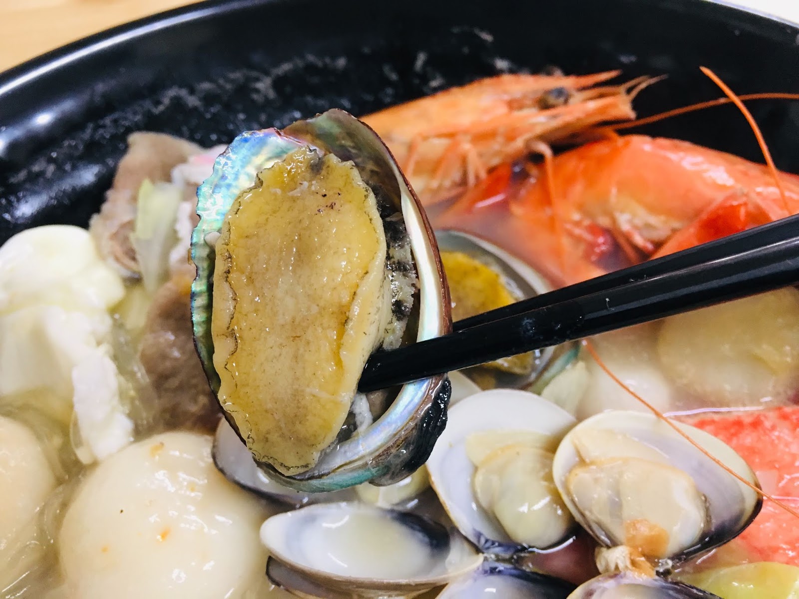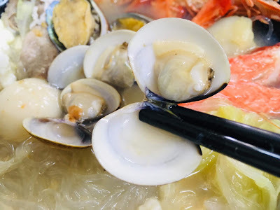 「豪華海鮮鍋燒冬粉」可說是菜單裡最氣派的料理了,一上桌就看到草蝦、鮑魚、干貝、魷魚、魚塊、蛤蜊、蟹肉棒等海產,不敢相信只要150元就可以吃到!