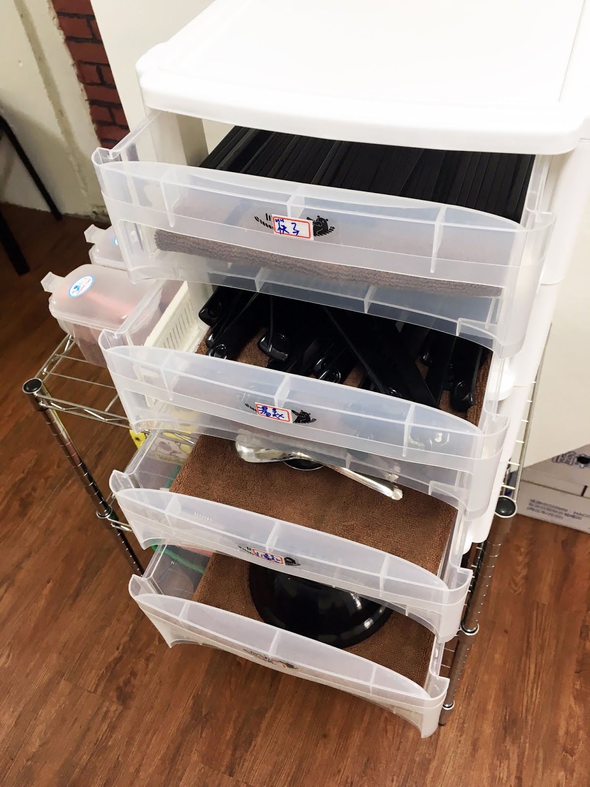 調味料和餐具都是自取,放在小抽屜裡的餐具相當乾淨,沒有灰塵和油漬,帶小孩出門吃飯最在乎衛生了,從廚房、餐具、用餐環境都一塵不染,衛生整潔我給滿分!