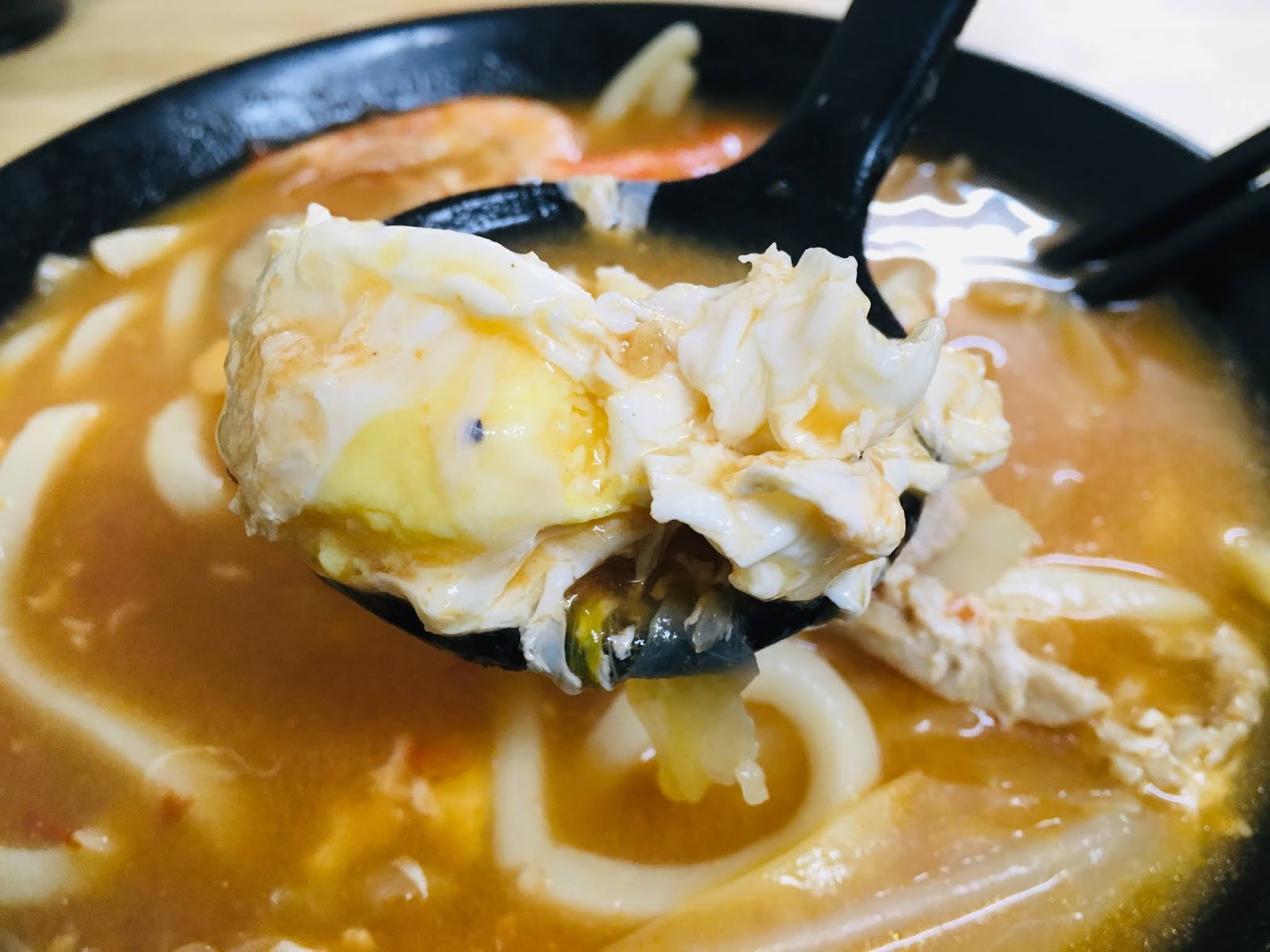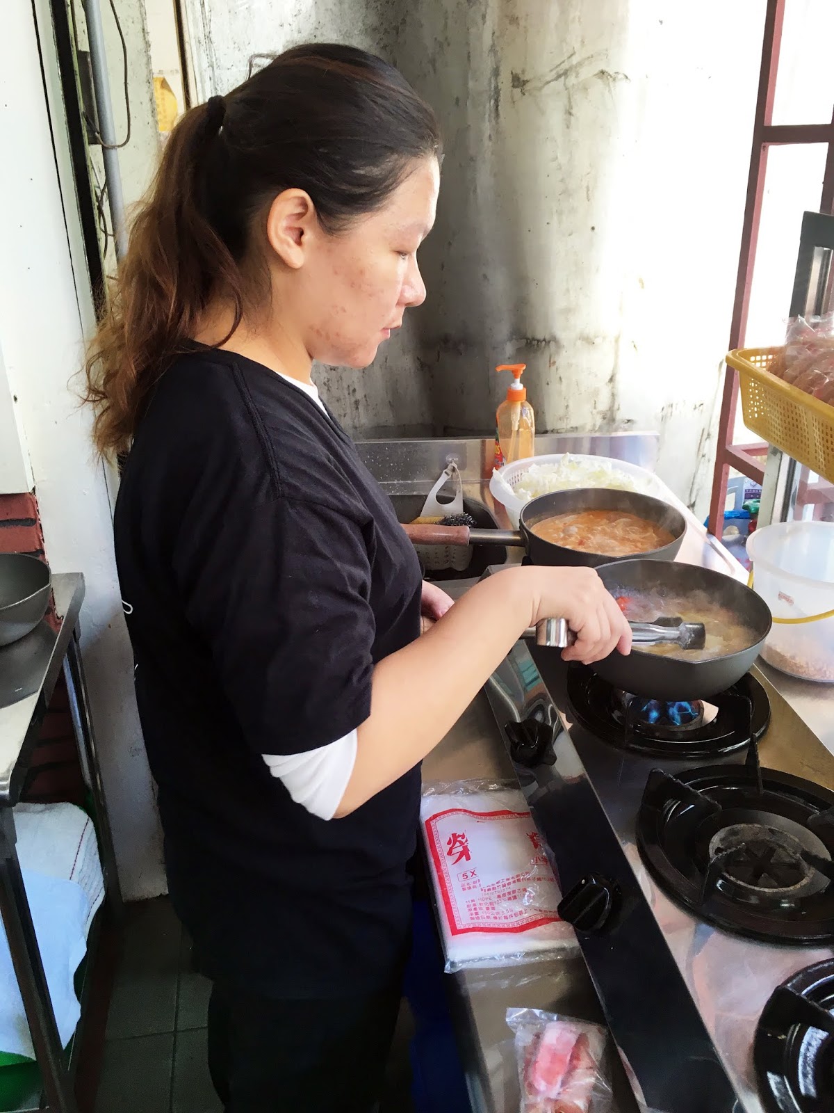 老闆娘和婆婆認真烹煮鍋燒意麵時,同時熱情地與我們話家常,知道我從台北嫁到台南,婆婆很興奮地分享她以前也住在台北很長一段時間,老闆娘的娘家則是在台南歸仁,讓我們有種他鄉遇故知的親切感。