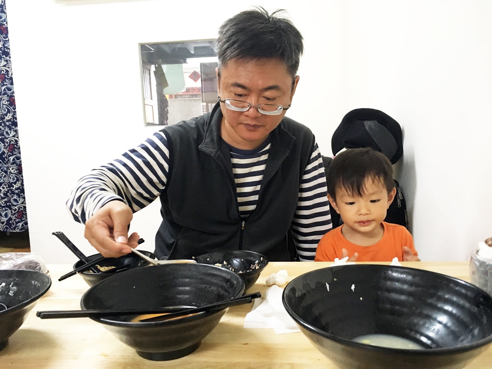 為了讓挑嘴的小福寶餓一點,老公先帶小福寶到附近的諸羅樹蛙共融式遊戲場(文化公園)放電,我一人先到店面點餐和用食物剪處理小福寶的食物。