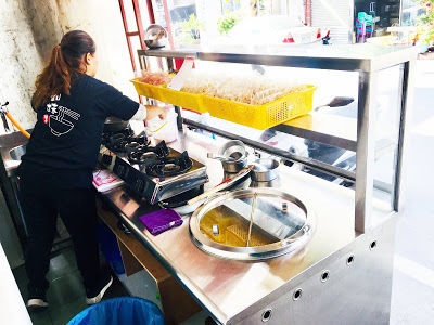 早上的國華街很靜謐,許多小吃店都還在準備中,老闆娘卻早早10點就開店了,大紅色招牌很醒目,從祝賀的花籃上注意到12月才剛開幕,店面和設備看起來都很新。