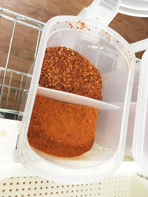 辣椒粉有粗粒和細粒,我各嚐了一口,粗粒比較香,細粒比較辣,對喜歡吃辣的人來說很椒香夠味。