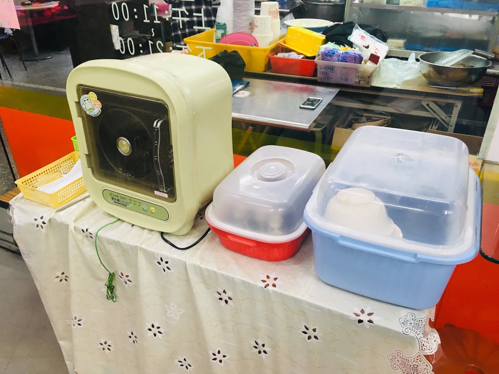 調味料和餐具都是自助式取用,檯面上一塵不染,餐具被收納在紫外線烘碗機裡,看得出店家對整潔的用心。