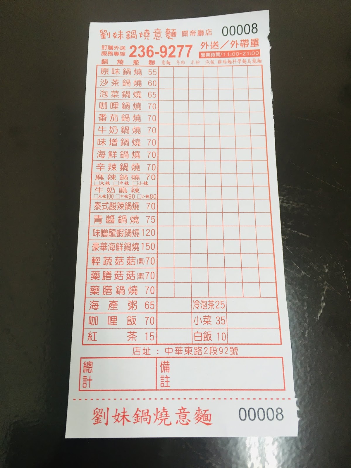 12/24(一)下午和老公到市區辦事,順便到關帝殿(關帝廳)還願,鄰近就是「劉妹鍋燒專賣店(關帝廳店)」醒目的大紅色招牌,還沒到用餐時間,竟有眾多外帶人潮,店內也有許多客人用餐,這讓我們很好奇這個快速竄紅的鍋燒加盟品牌到底是什麼滋味呢?