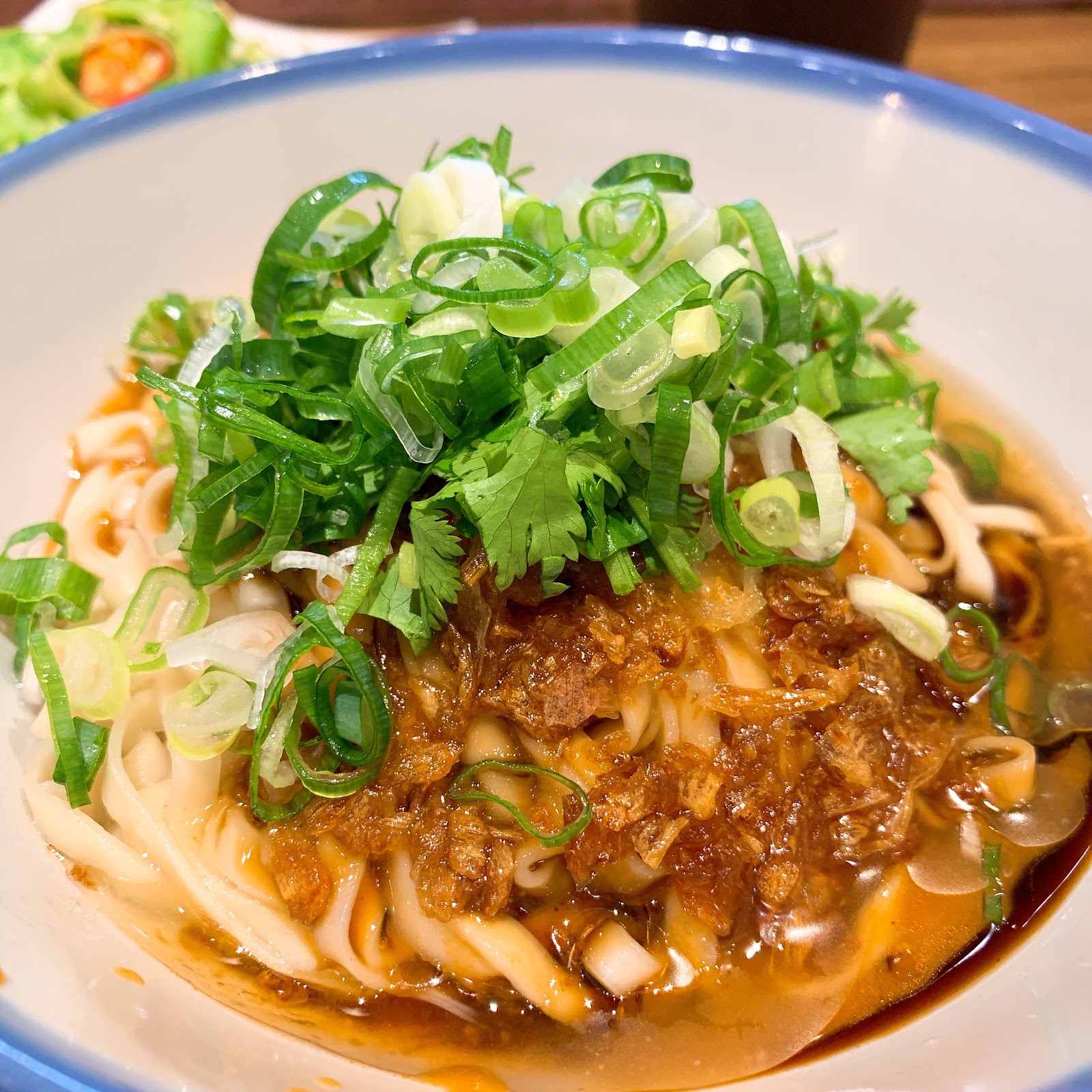 『椒麻乾麵』也相當有看頭,連同辣椒籽拌炒的細碎辣椒末在白麵上頭特別顯色,以及店內經典的細細蔥花,看見如此豐富的配色,一聞到那股椒香味,口腔不禁開始分泌唾液,吃起來不只是單純的辣而已,嘴裡散佈着麻麻的口感,明明很辣卻讓人一口接一口地吃下去,推薦嗜辣的饕客一定要來嚐嚐看。