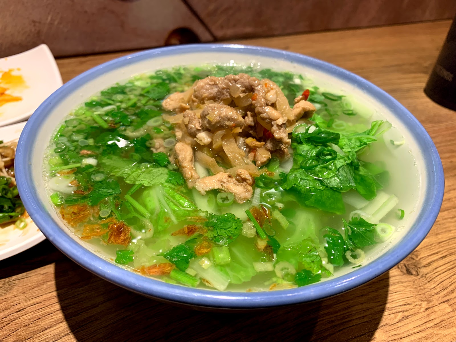 湯麵的蔬菜量不少,榨菜也不會過鹹搶了蔬菜湯的滋味,儘管有油蔥也不會感到油膩,這是會讓人想喝光的麵湯,嫻靜路線的料理風格與奔放的乾麵截然不同,打工仔再次被收服了啊!