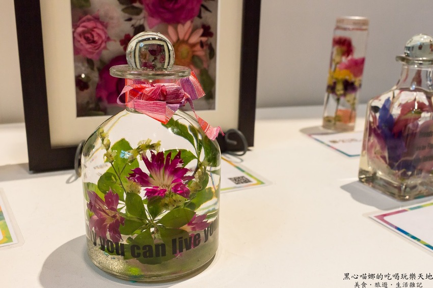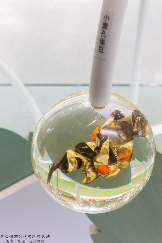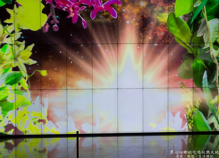 以上百朵蘭花組成的「蘭花知識雲」(可是我怎麼看都像水母啊…),無數氣根與光纖交纏垂墜,每條鬚根對應著像徵資料庫的投影漣漪,在點點星光中漂浮,觸控畫面是各種關鍵字以大數據網路的科幻型態漂浮,可以讓大家進行多媒體互動,點選三個最感興趣的關鍵字後,以手機設計出一張獨一無二的個性化蘭花卡做紀念。