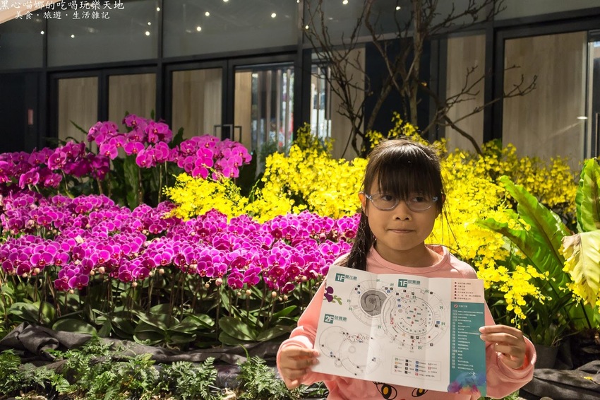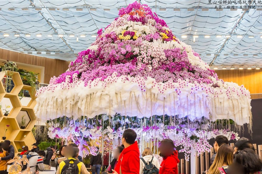 在空中掛上不同蘭屬與顏色多樣的蘭花,與步道旁的造景相互輝映。