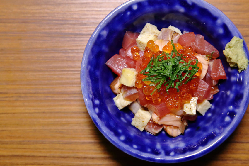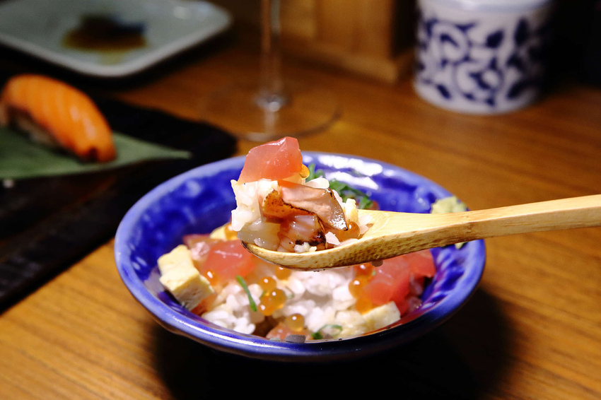 散壽司裡面有各種生魚片料理,旗魚、鮭魚、鮭魚卵,各種色彩繽紛的食材,料超多、超豐富