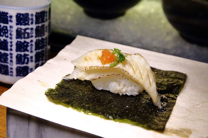 星鰻非常柔嫩細膩、味道清新,新鲜度自然不用提,塗上醬汁炙燒過後帶著淡淡的鹹甜味