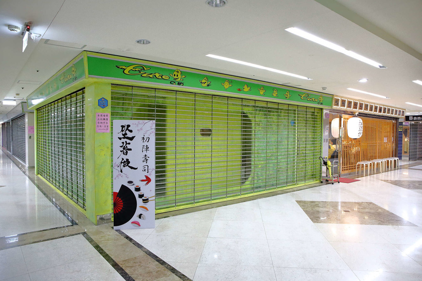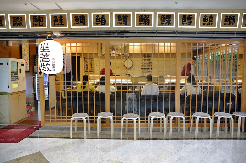 沿著手扶梯上來,就可以看到萬綠叢中一點紅的【坐著做。初陣壽司】,哈哈,不要懷疑,小編都一度差點以為走錯了找不到