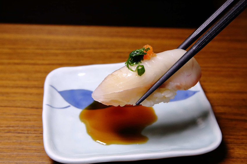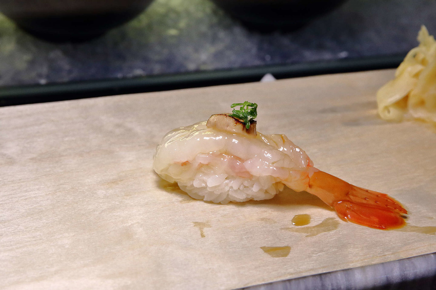 小編還是第一次吃到這種口味的握壽司,上頭撲滿一隻隻晶瑩剔透的小白蝦