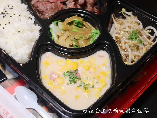 沙拉把牛排夾上來鋪在飯上,便當裡都還有,保證吃得飽啦!!