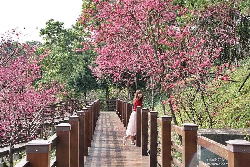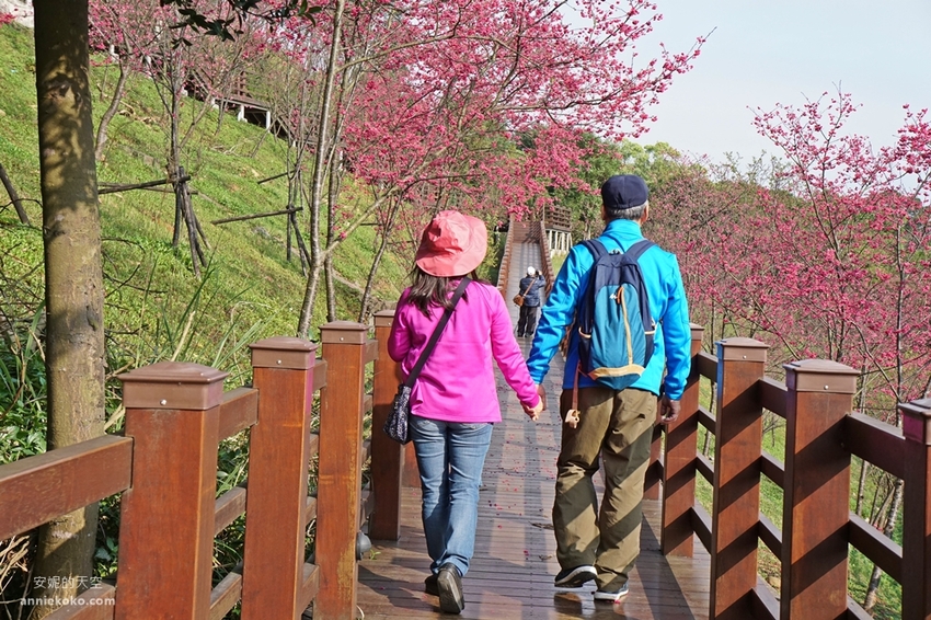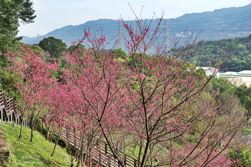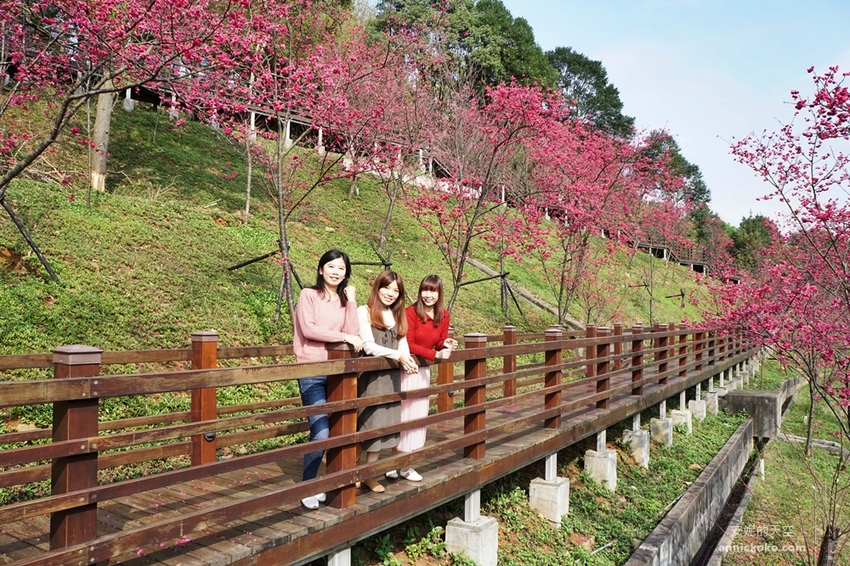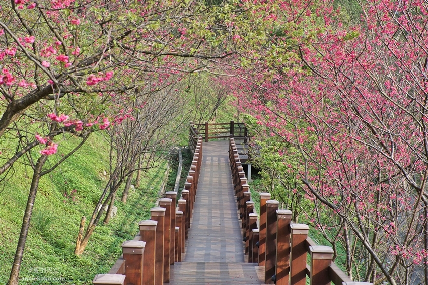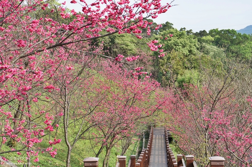 粉紅揉進了小山坡,滿山遍野的櫻花林溫柔綻放,搭配著綿延環繞的木棧道,這裡的櫻花林美不勝收,像是在呼喚著春的序曲,叫人迷戀不已。