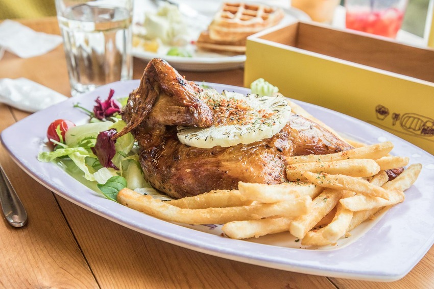 我們點了薰衣草節期間限定:「湖畔森林烤半雞」、「紅酒番茄鄉村燉牛肉」,許多景觀餐廳普遍都給人一種貴又不好吃的印象,但薰衣草森林(明德店)的料理可是頗具水準呢,像是湖畔森林烤半雞一點都不輸給專業的烤雞店呢,一上桌香氣撲鼻!